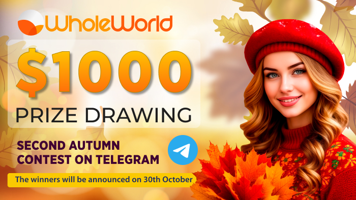 🔸 In your Whole World account profile, specify your Telegram nickname you are taking part in the draw with