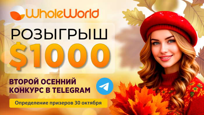 Каждый может выиграть до $500 в розыгрыше $1000 в конкурсе Whole World!